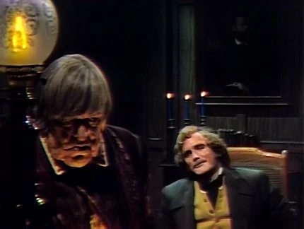 Episode 1110 of Dark Shadows was directed by Lela Swift and written by Sam Hall. It first aired on ABC on Friday, September 25th, 1970. In this episode, Julia Hoffman escapes the destruction of 1970 Collinwood via the Stairway Into Time and finds herself transported back to the year 1840. After overhearing a conversation between an angry crippled member of the household named Gabriel Collins with an elderly Ben Stokes, Julia decides to take her chances and entreats Ben's aid. Later, Gabriel tries to pressure Ben into telling his invalid father, Daniel Collins, that his favorite son, Quentin is dead and that he should change his will, leaving the family fortune to Gabriel.