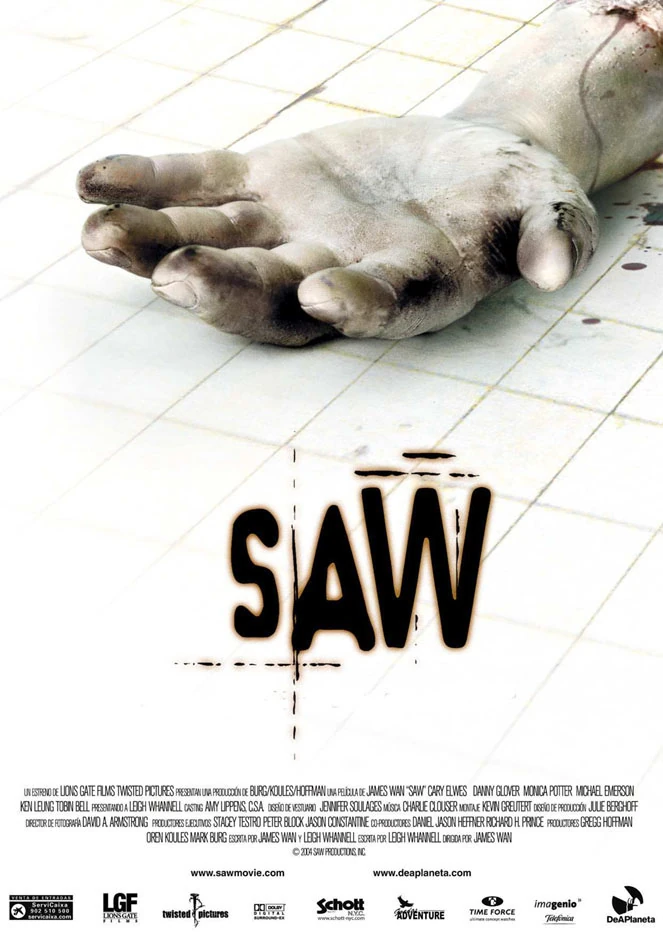 Saw is an American horror movie of the slasher subgenre. It was written and directed by James Wan and produced by Twisted Pictures, Saw Productions, Inc. and Evolution Entertainment. It was released theatrically in the United States on October 29th, 2004. The movie stars Tobin Bell as a mysterious serial killer known as Jigsaw. Adding to the cast is Predator 2 star Danny Glover and Dracula actor Cary Elwes. Obsessed with teaching his victims the value of life, a deranged, sadistic serial killer abducts the morally wayward. Once captured, they must face impossible choices in a horrific game of survival. The victims must fight to win their lives back, or die trying...