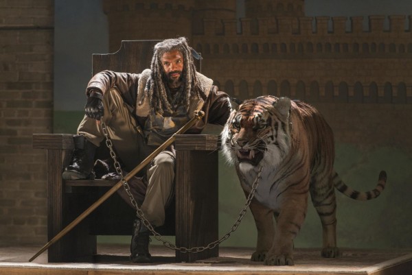 "The Well" is the second episode of season seven of the zombie survival horror television series The Walking Dead, and the eighty-fifth episode of the series overall. It was directed by Gregory Nicotero with a script written by Matthew Negrete. It first aired on AMC on Sunday, October 30th, 2016 at 9:00 pm. In the episode, we are introduced to the Kingdom, the community that rescued Morgan Jones and Carol Peletier, as well as their omnipresent and wise leader, King Ezekiel who owns a pet tiger named Shiva.
